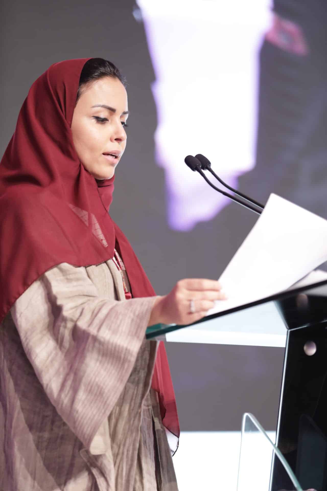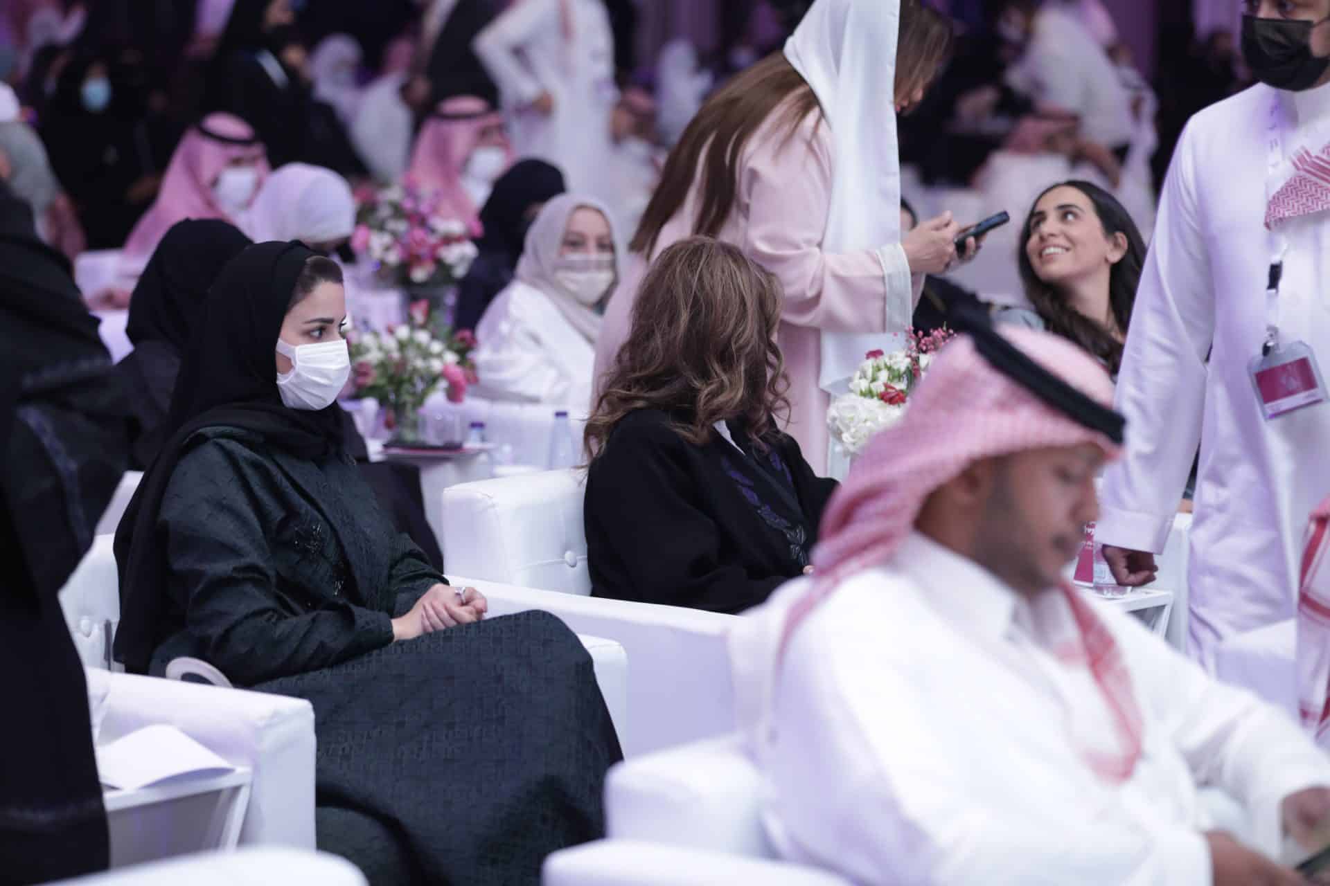 في الصدد نفسه، ألقت الدكتورة مرام الجعيد كلمة نيابة عن صاحبة السمو الملكي الأميرة مشاعل بنت مقرن بن عبد العزيز آل سعود، أكدت خلالها على أن السعوديات شريكات في دعم نهضة المملكة.
